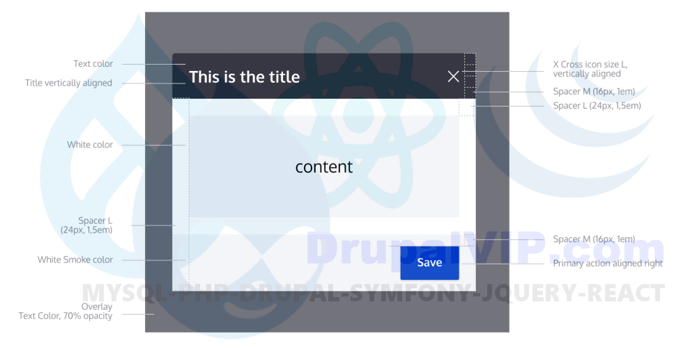 Multiple dialogs can be displayed at the same time. - Off canvas dialogs: Are no popup windows that overlap other content, but are sliding into the page by moving other content to the side.